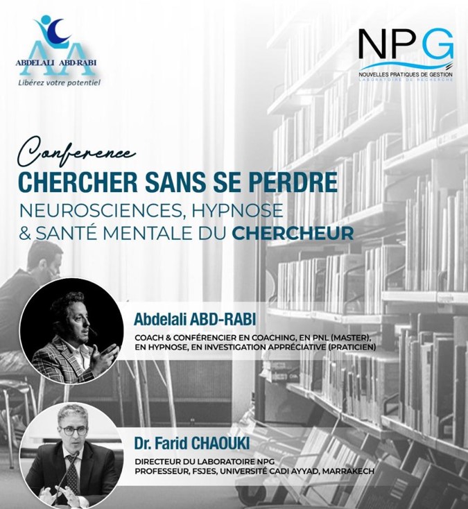 Chercheur performant – Neurosciences & Bien-être Chercheur performant Quand la performance scientifique commence par le bien-être mental Date : 22 novembre 2025 Lieu : Université Cadi Ayyad, Marrakech Dans un environnement académique où la rigueur et la performance dominent, le chercheur oublie parfois l’essentiel : lui-même. Cette intervention explore, à la lumière des neurosciences et de l’hypnose, les mécanismes cérébraux favorisant une meilleure gestion du stress, des émotions et un accès élargi à l’imagination. Et si le bien-être n’était pas une pause dans la recherche, mais une condition de la découverte ? Repenser la performance scientifique Un chercheur performant n’est pas seulement quelqu’un qui produit des résultats. C’est quelqu’un qui…